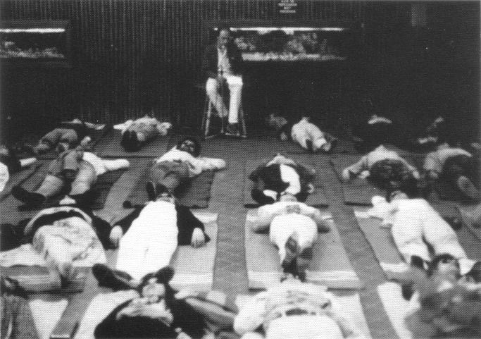 The visitors wear ultra violet goggles. After half an hour the participants lie on blankets. They make a fantasy journey in imaginary images, conducted by a narrator.