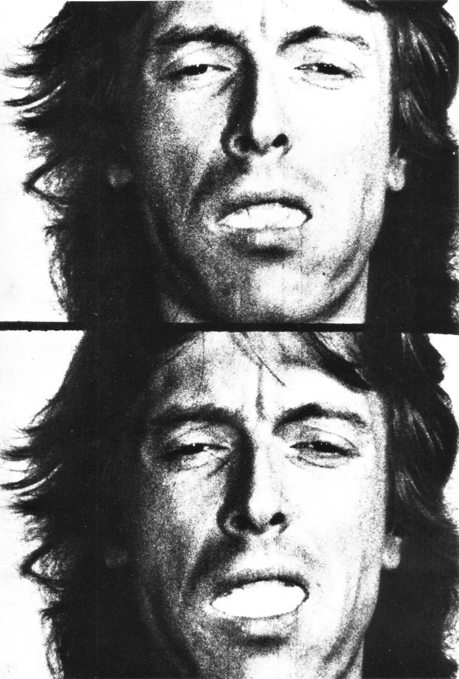 Klaus Boegel's face fills the screen. His mouth is filled with dough and he has trouble speaking. Every now and then, he swallows with great difficulty. Boegel keeps repeating the phrase 'Ich klebe an der Sprache' ('I stick to / hold on to language').