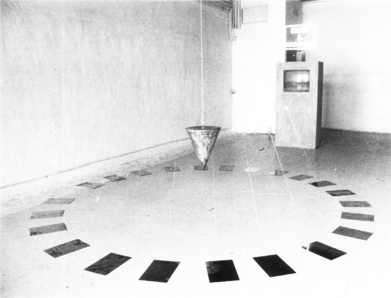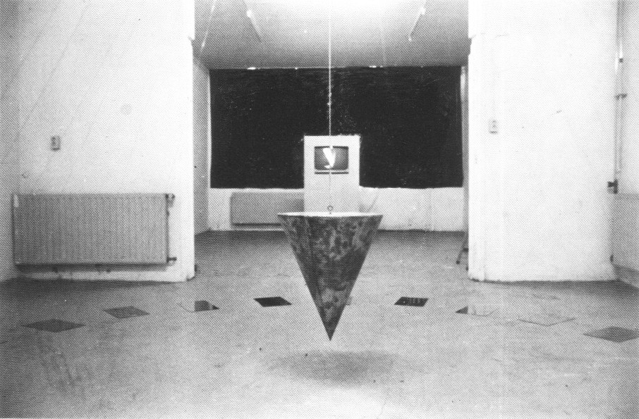 The participants sit in a circle around the cone of copper in a semi-dark room. Their feet rest on copper-plates, which are connected with te cone by copper-wires.